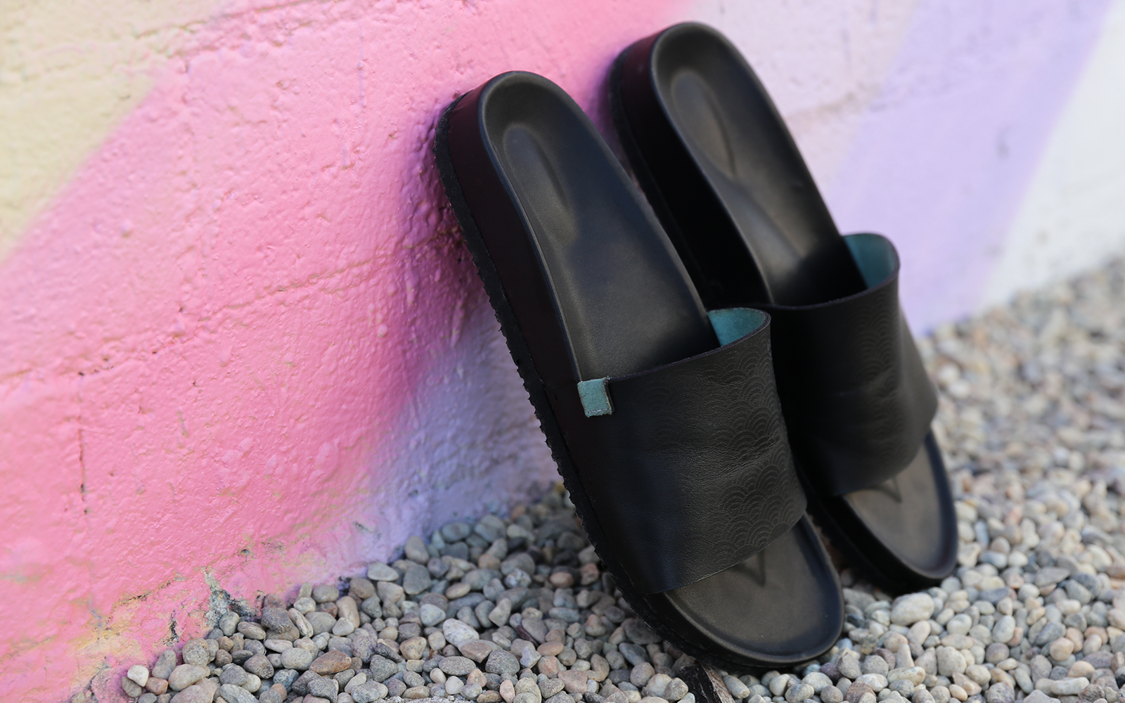 Supreme comfort in a sleek slide that can be personalized with your own pattern or design. A cushy ergonomic footbed and a leather strap that molds to your foot like butter to provide the ultimate in comfort and style.